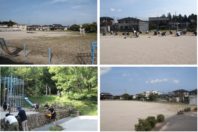 PTA奉仕作業を実施しました。運動場や裏山、中庭の溝などの除草・清掃作業をしていただきました。皆さまのおかげで、子どもたちが活動しやすい環境が整備されました。保護者の皆様には大変暑い中、早朝よりご協力いただきありがとうございました。また、役員の皆様には準備や運営等お世話になりました。 |